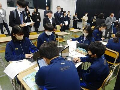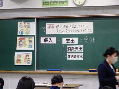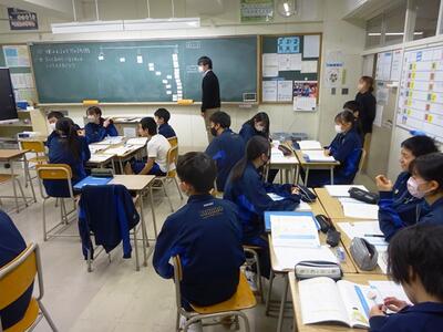 4時間目に2年A組家庭科の授業をたくさんの先生が参観しました。