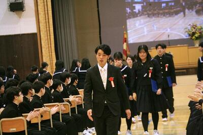 66名の新入生のみなさん、ようこそ美幌中学校へ。誰もが立派な態度で式に参加しており、中学校生活にかける強い思いを感じられるような、とても素晴らしい式でした。明日からは授業が始まります。「『本気の学び』を実践に」を意識して授業に臨みましょう。