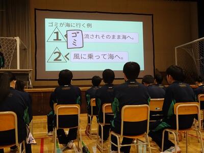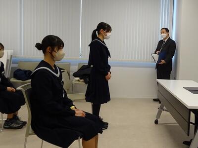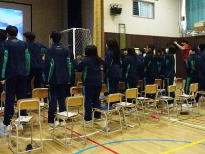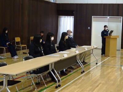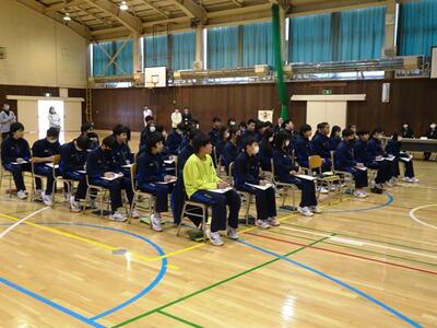 M先生からは「生活の基礎・基本を中学校のうちから身に付けてもらいたい」「どのコースに進むとしても、コミュニケーション能力が大切になってくる」との話をしていただきました。