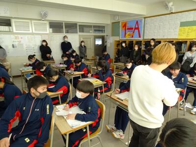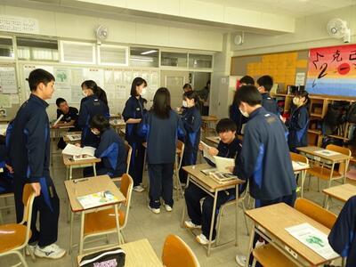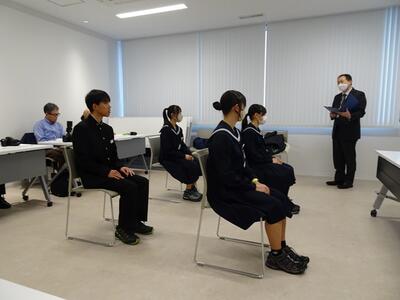 2年総合的な学習の時間では、キャリア教育の一環として「高校の先生・先輩に学ぶ会」を開催しました。
